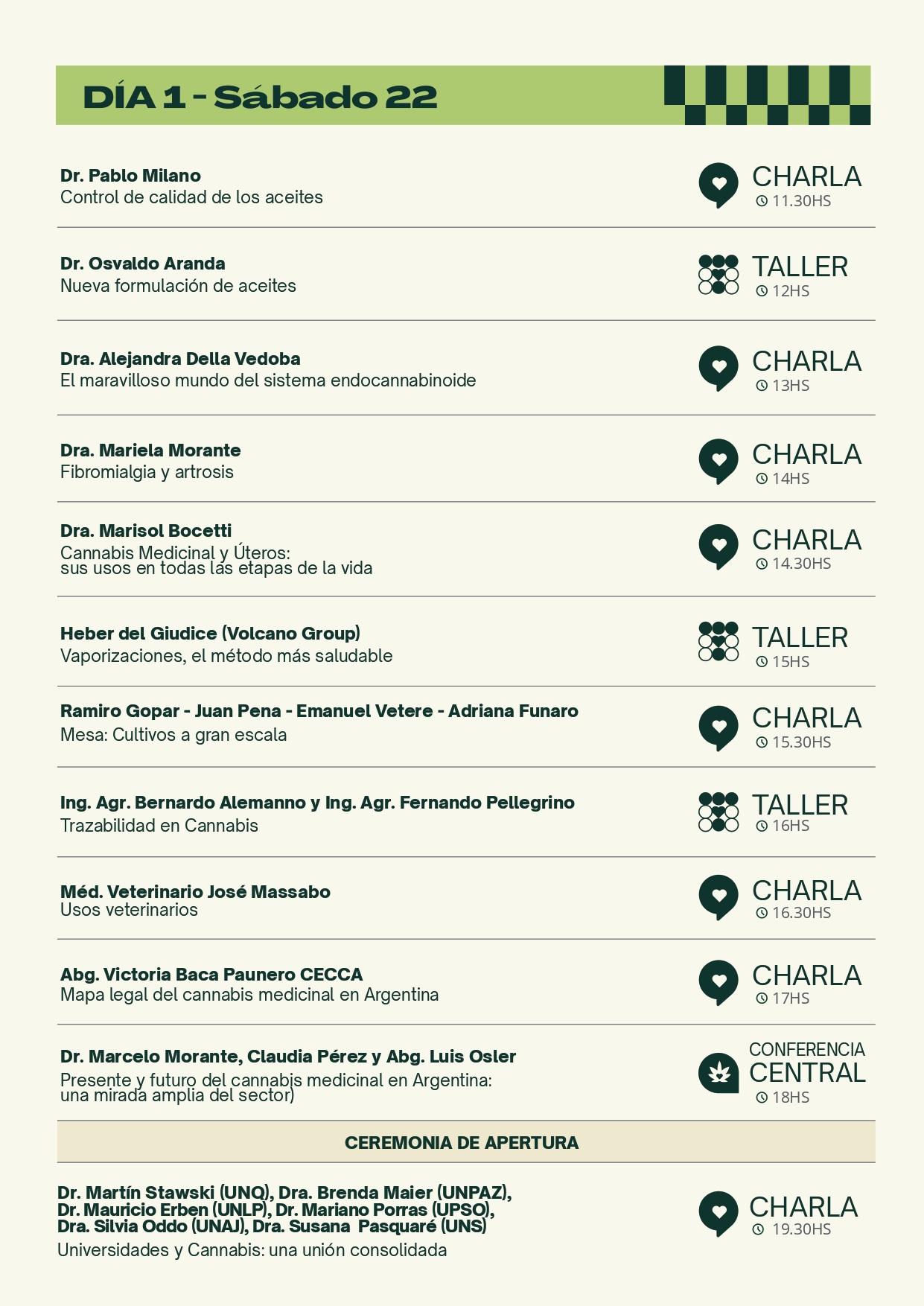 Charlas científicas y médicas centradas en cannabis medicinal, acceso, usos terapéuticos, nuevos avances y marco regulatorio.