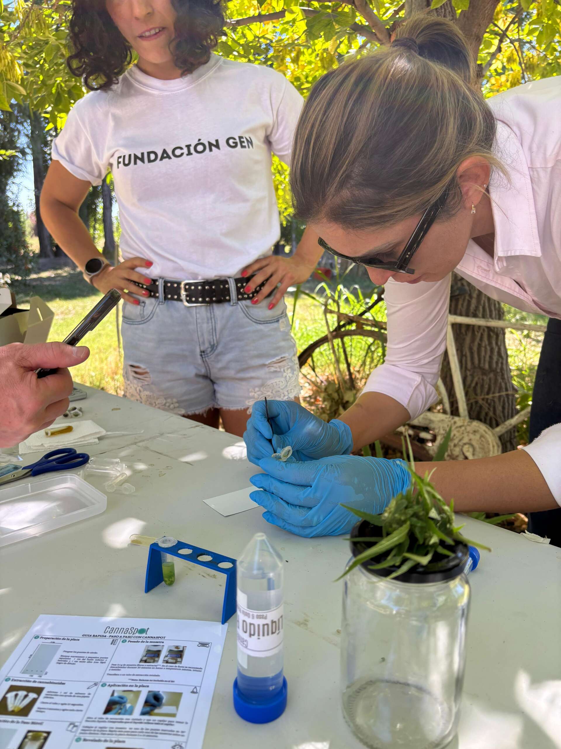 Medición de cannabinoides en campo con el sistema CannaSpot (@Daiana Pisanu)